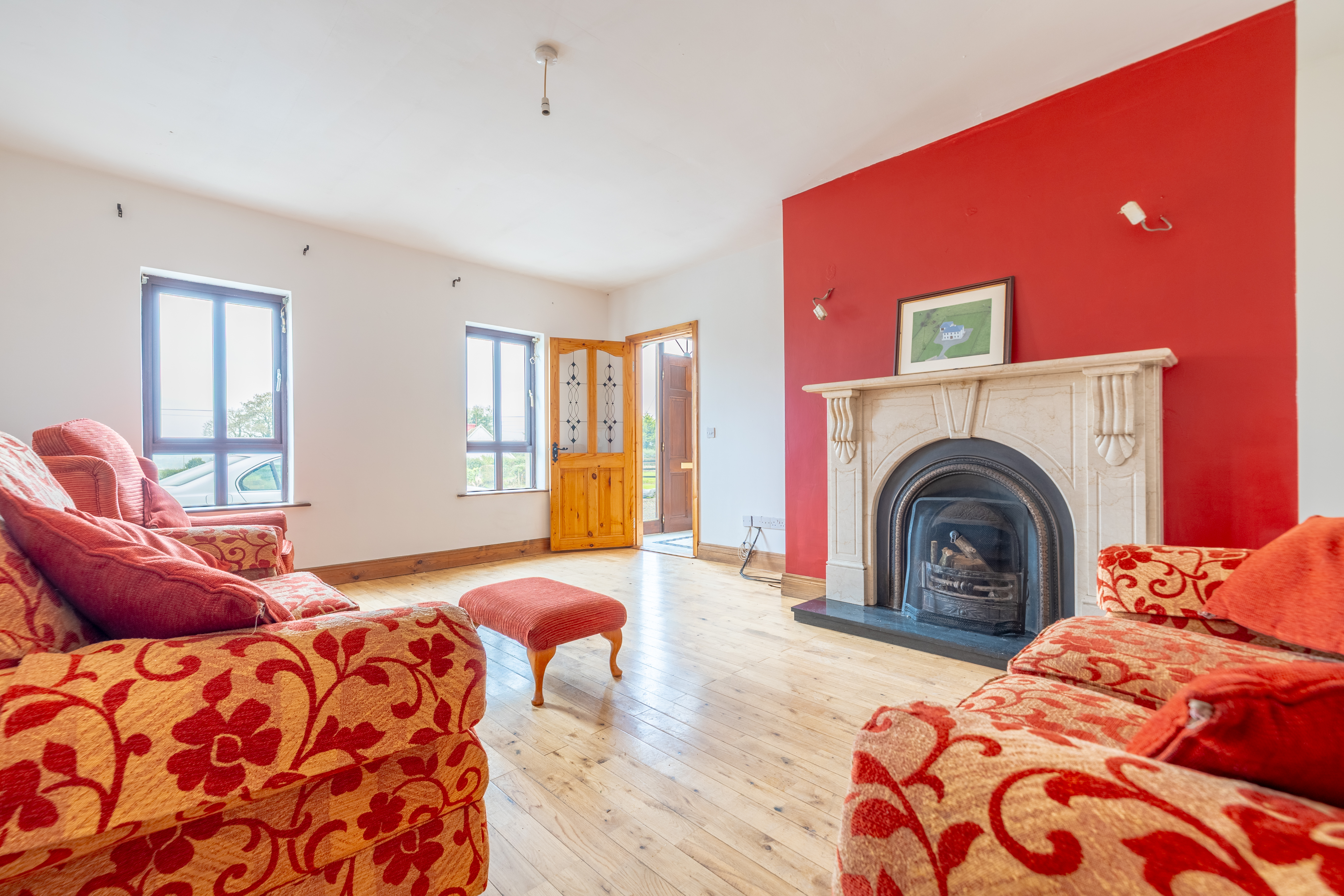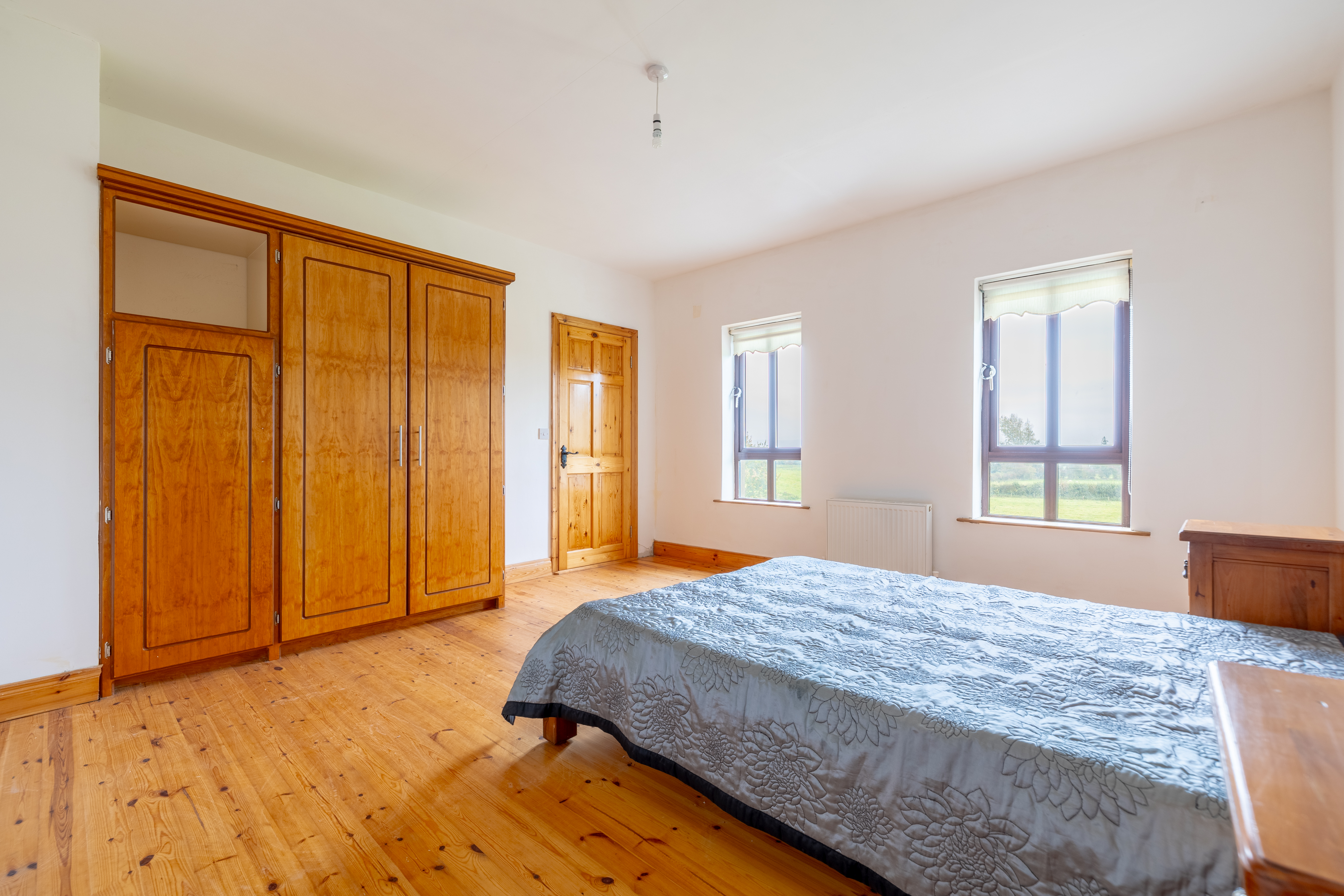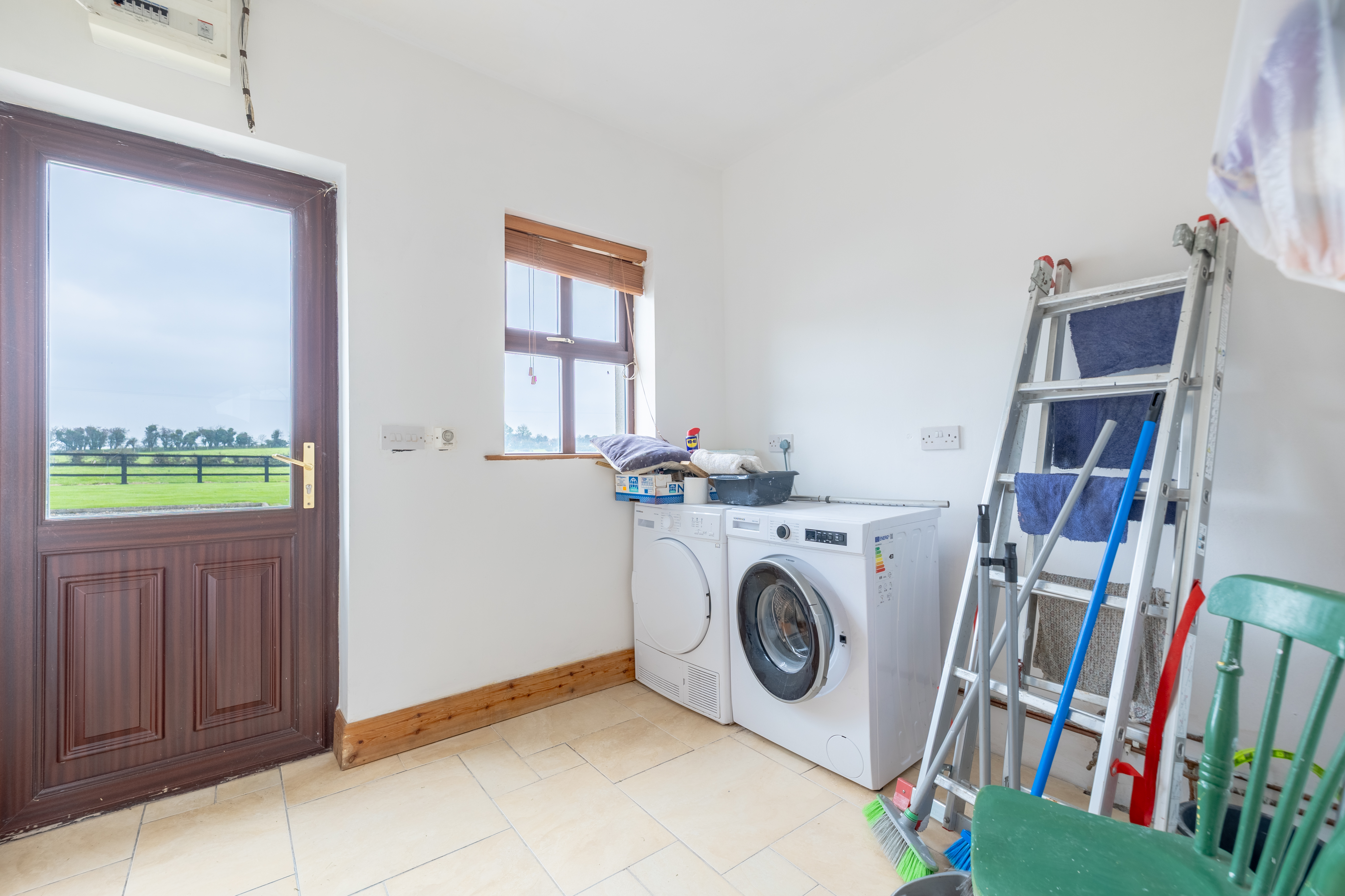 Accommodation includes four well-appointed bedrooms, one of which is conveniently located on the ground floor, offering flexibility for guests, a home office, or multigenerational living. Each room benefits from large windows that frame the beautiful rural scenery and allow natural light to flood in.