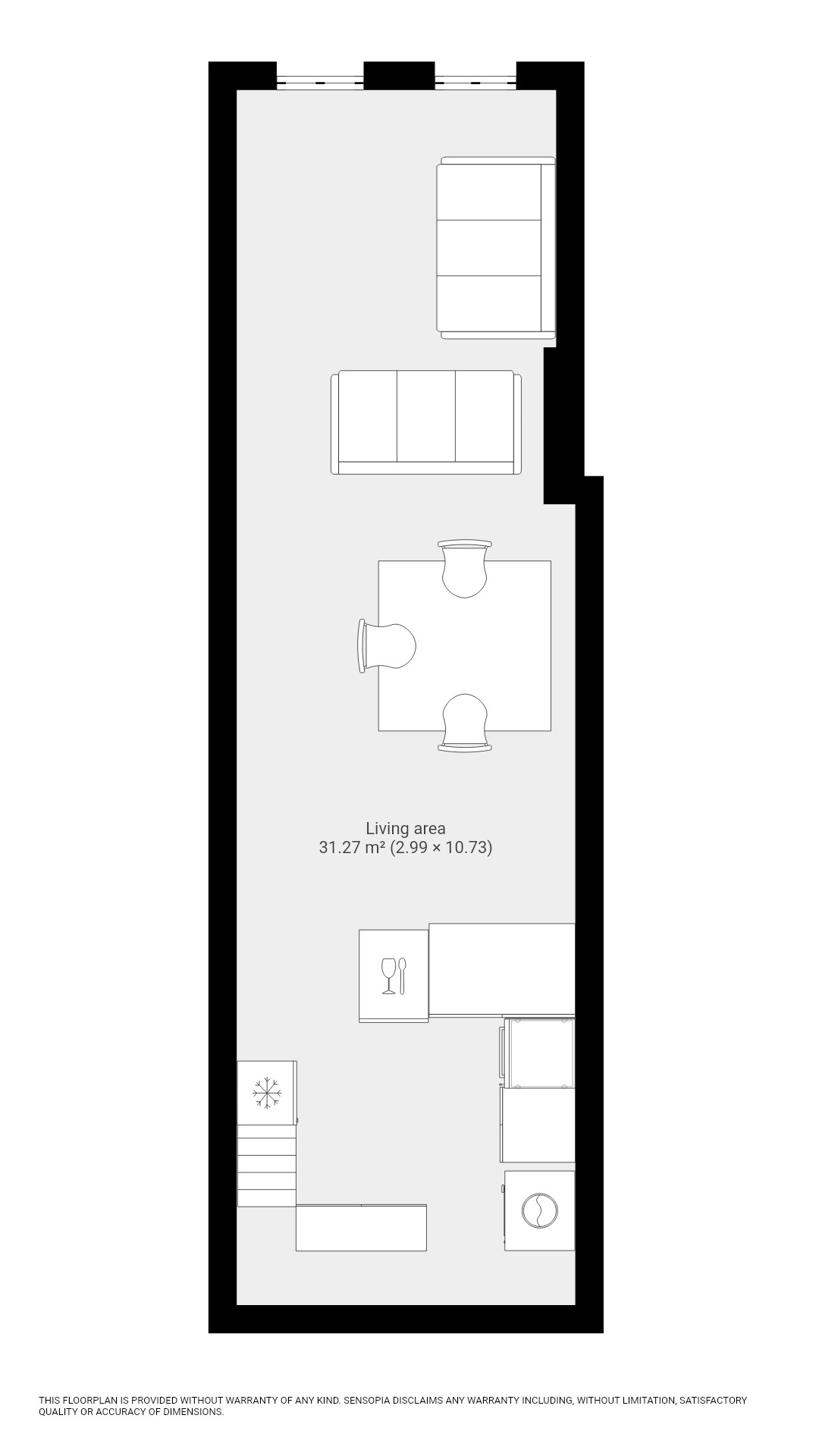 Kitchen / Living 2.99m x 10.73m (9’10” x 35’2″)